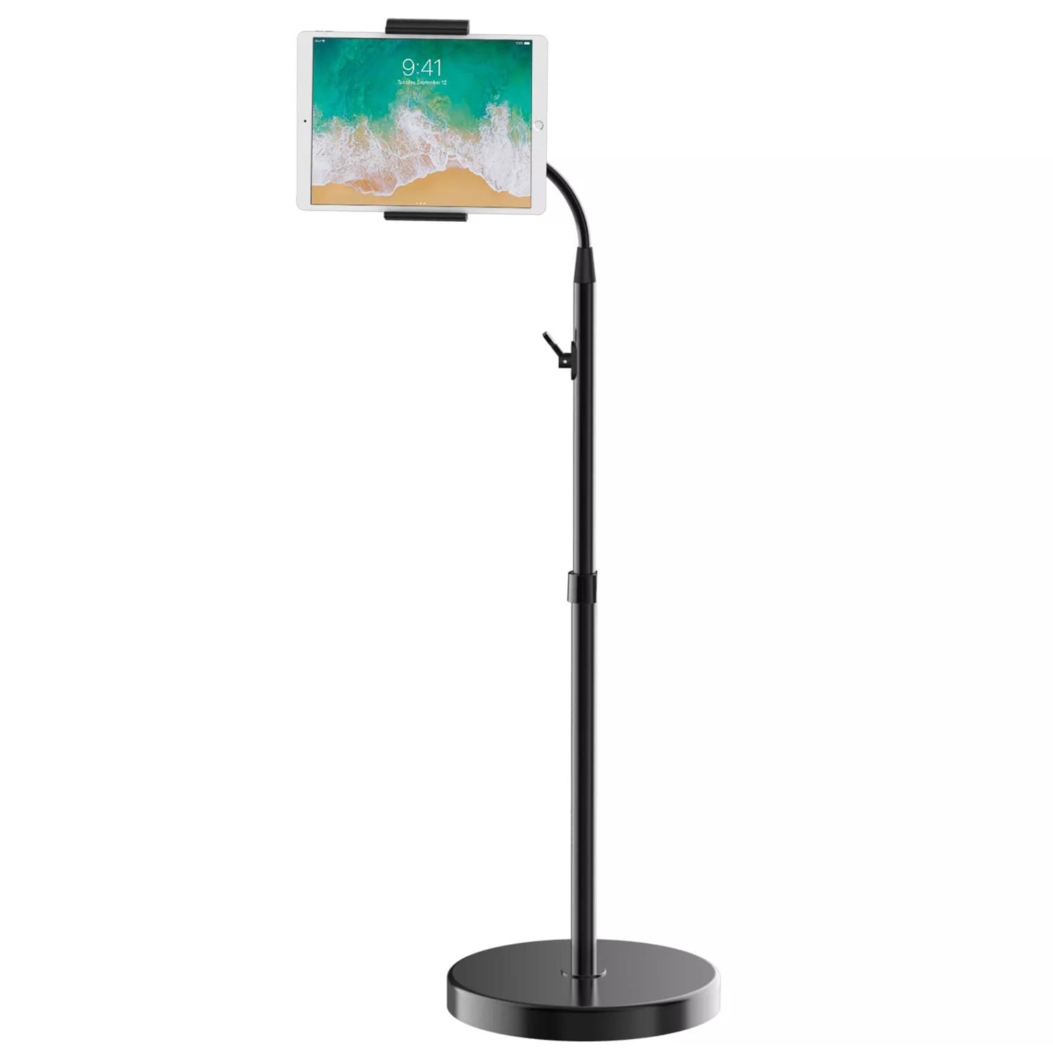 This easy-setup floor stand is without equal in adjustability, featuring a powerful, flexible gooseneck and a tilting headpiece with easy 360-degree rotation.