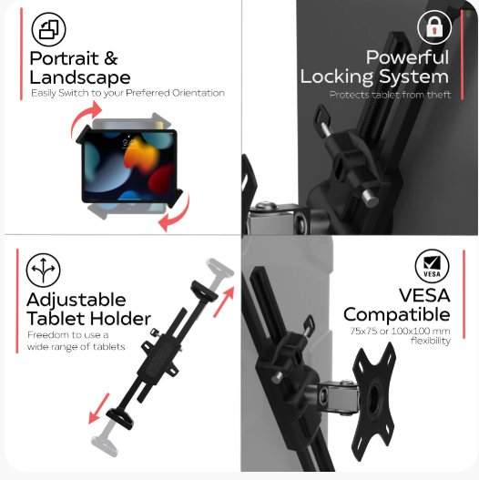 - Compatible with tablet cases up to 1 inch in total thickness